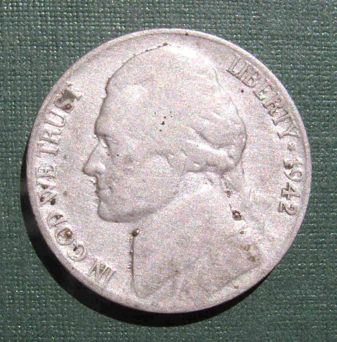 (21) (22) Moneta da 5 Cents americana, ritrovata in sito militare a Villamagna.